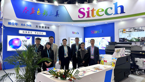 The 2025 Beijing International Printing Technology Exhibition opened on May 15 in Shunyi, Beijing. SITECH introduced its independently developed "SCAP Self-Curable Aqueous Pigment Ink." The exhibition showcased inkjet printing technology directly on PET film, Tyvek (DuPont paper), and coated paper. Unlike typical aqueous inks that require pretreatment and high-temperature baking, SCAP only needs to be printed directly onto a pre-coated PET film surface, completing the first curing reaction and initially curing on the PET surface. It then undergoes a second curing reaction through low-temperature baking at about 50°C, achieving full curing. Printing on coated paper requires no pretreatment; direct printing achieves curing immediately.